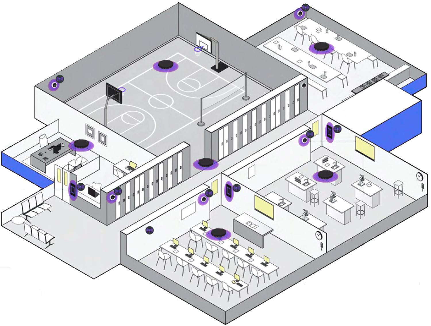 - Gunshot Detection sensors are installed in ideal locations for maximum device coverage.
